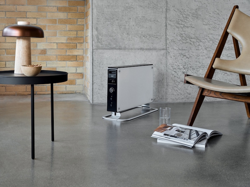 Vi önskade verkligen att produkten osade elegans också, så vi gav det en stilig svart färg på den mittersta delen. Den diskreta formen och vinklen på foten gör att det ser ut som elementet svävar över golvet. Helt enkelt fantastisk.