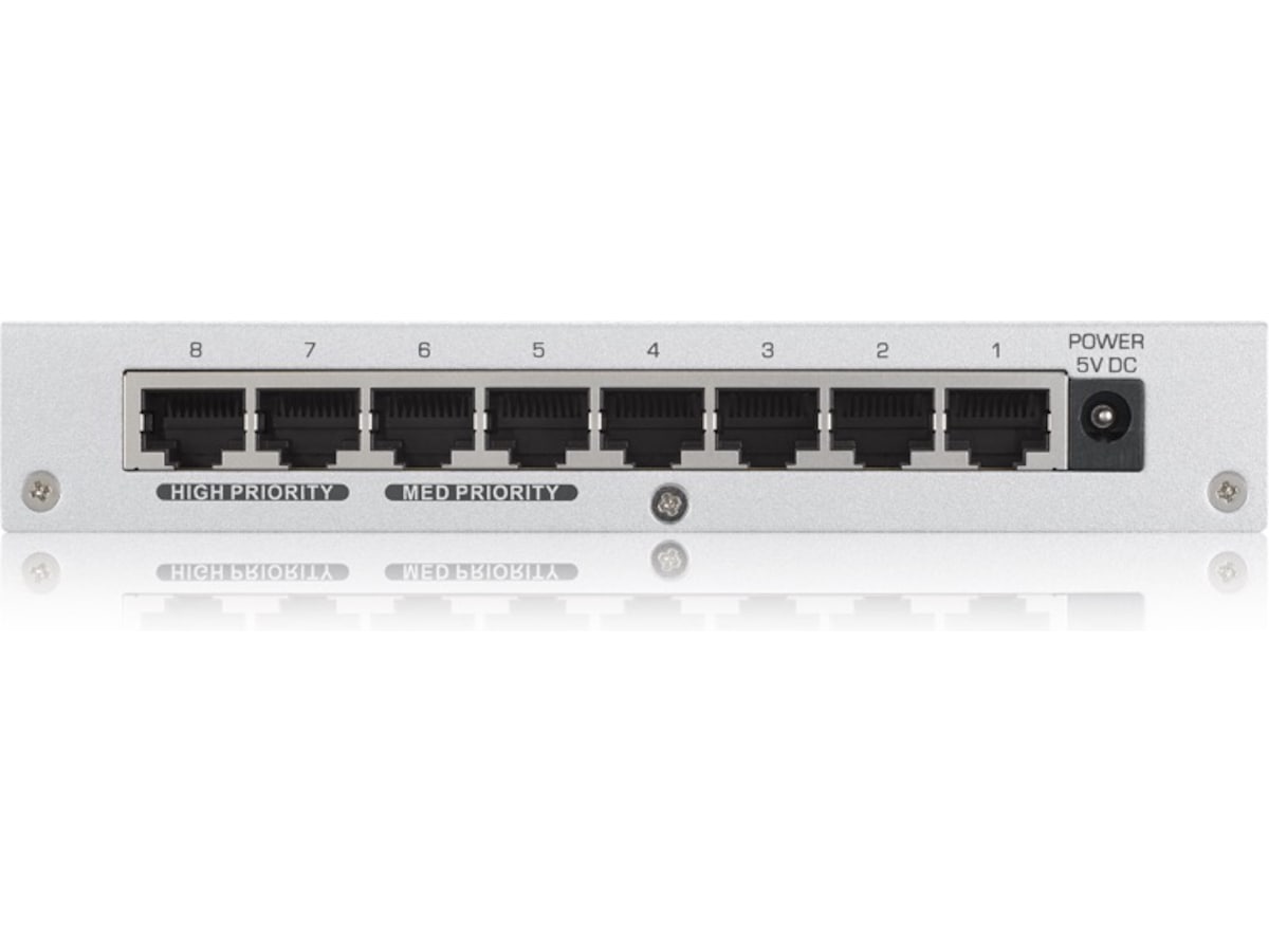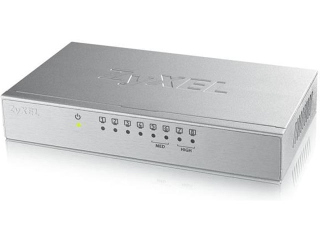 ZyXEL GS-108B v3 8-ports Stationär Gigabit ethernetbrytare för anslutning av nätverksenheter och hemnätverket till blixtrande Gigabit-hastighet. De nydesignade QoS-portarna garanterar en smidig dataöverföring för de mest intensiva applikationerna som VoIP och datakommunikationer.