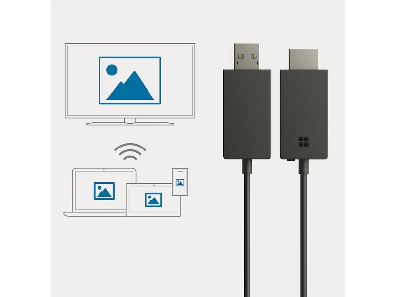 Dela vad som finns på din Tablet PC, bärbara dator eller smartphone1 till en HDTV eller bildskärm med Microsoft Wireless Display Adapter. Strömma filmer, visa personliga bilder eller visa en presentation på en stor skärm – allt trådlöst.