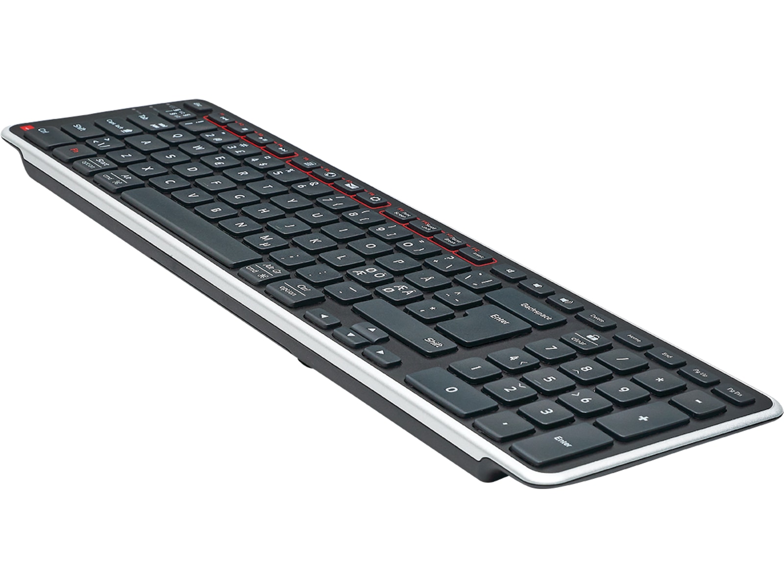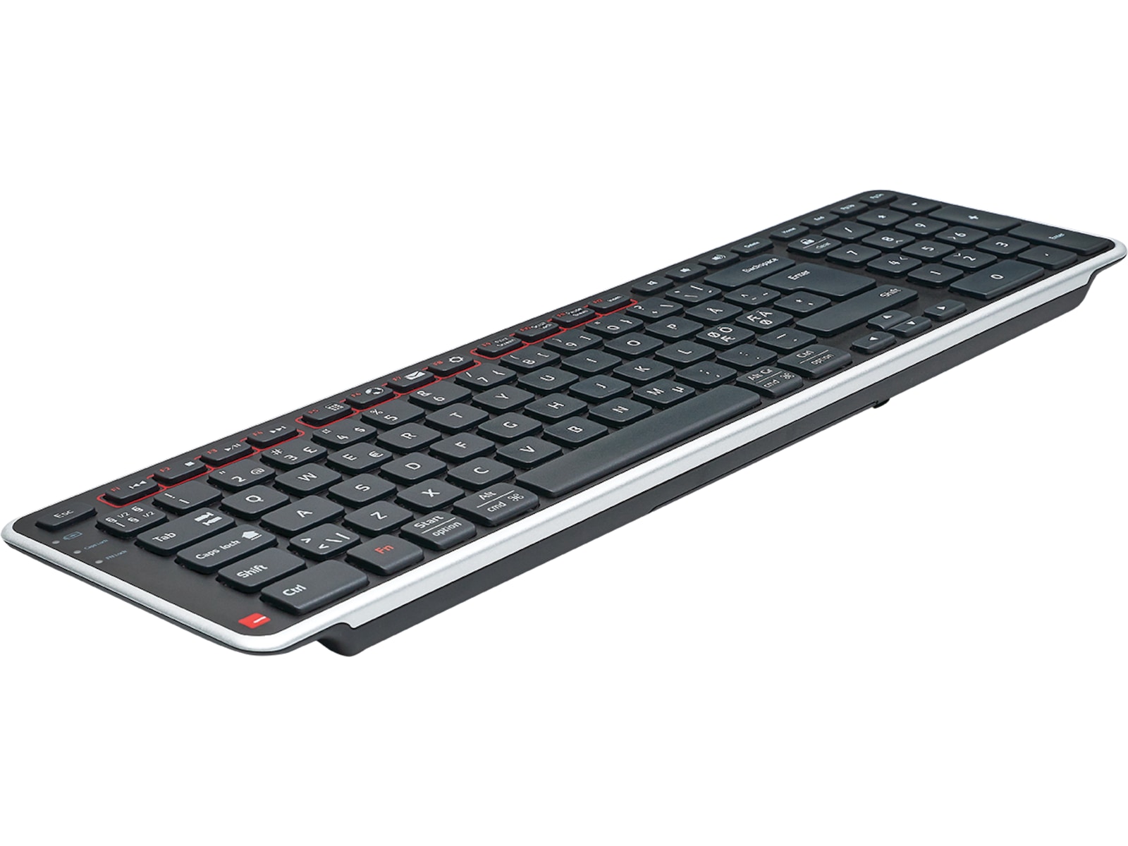 Det är dags att kapa sladden. Balance Keyboard är trådlöst och strömförsörjs genom två AAA-batterier. Du kopplar till PC eller Mac via den tillhörande trådlösa USB-mottagaren, som hålls säkert på plats magnetiskt i batterifacket när den inte används.