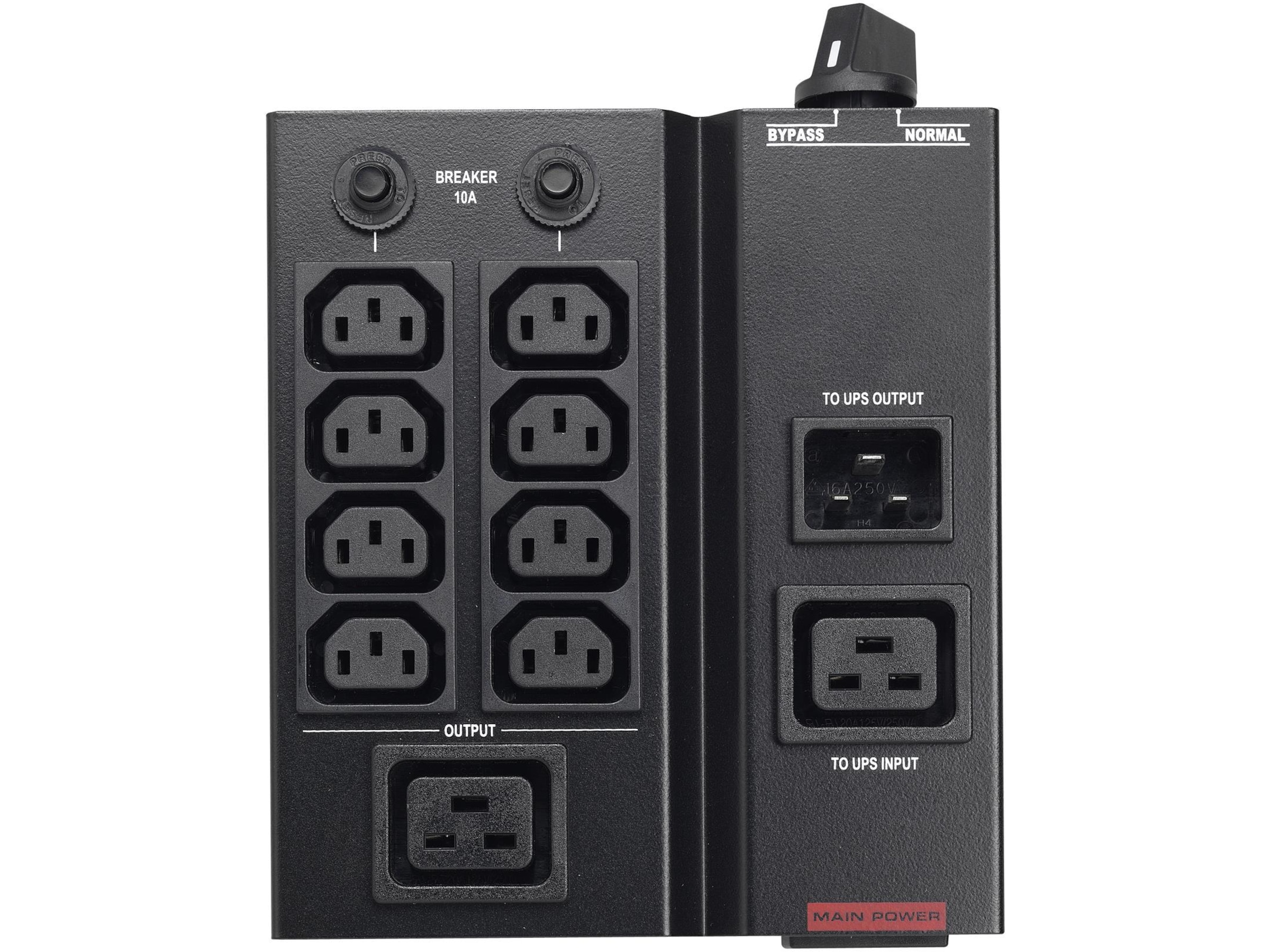 En extern Maintenance Bypass Switch med funktion av en PDU (Power Distribution Unit). Den ger kontinuerlig strömförsörjning utan att stänga av de anslutna lasterna vid schemalagt UPS-underhåll eller batteribyte. Som PDU gör den det möjligt att fördela strömmen mellan flera belastningar. Den är klassad upp till 3000VA.