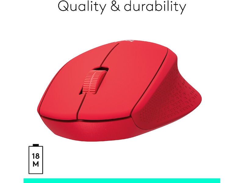 *Ljudnivå jämfört med Logitech M170. Uppmätt i ett oberoende labb och verifierat av Quiet Mark™. **Batteritiden kan variera beroende på användning..