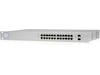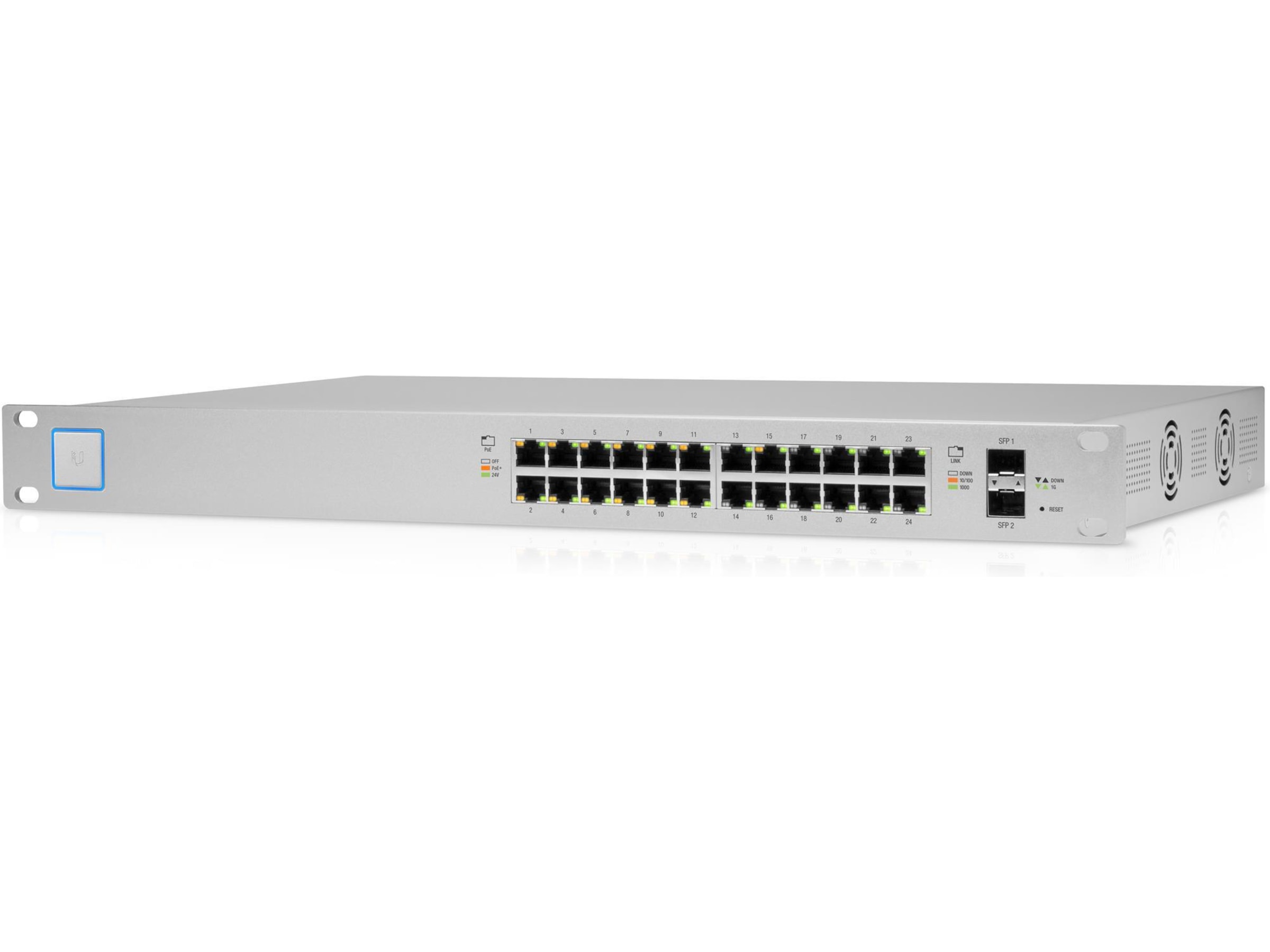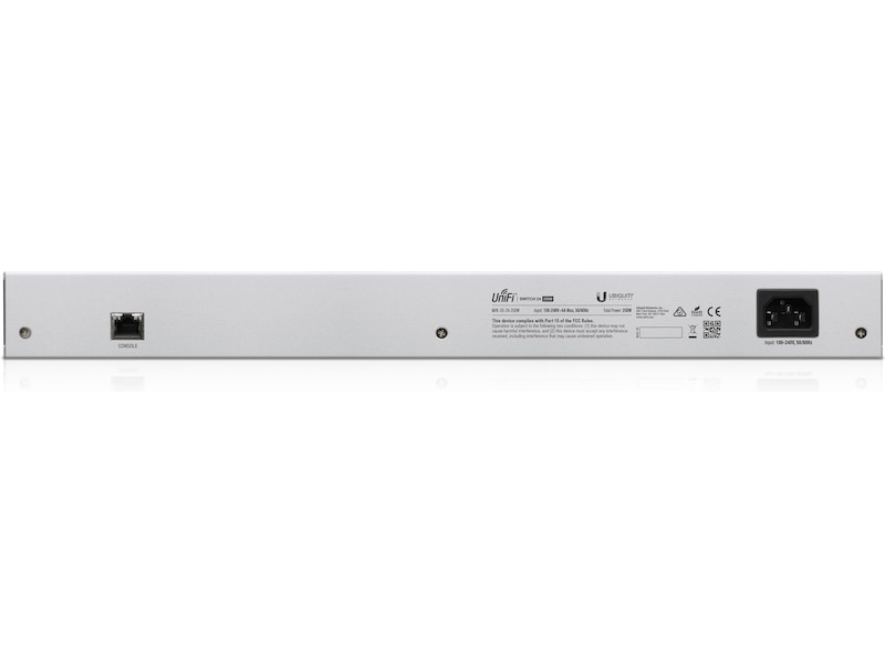 Switch 24 PoE 250W (US 24 PoE 250W) är en fullt hanterad switch med 24 GbE RJ45-portar och 2 1G SFP-portar. Var och en av växelns portar kan tillhandahålla antingen PoE+ eller konfigurerbar passiv PoE på 24 V till UniFi accesspunkter eller andra PoE-enheter. Växeln kan övervakas och konfigureras var som helst med den kraftfulla och intuitiva webbapplikationen UniFi Network och mobilappen.