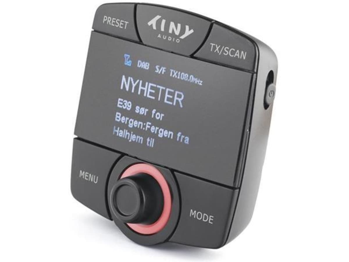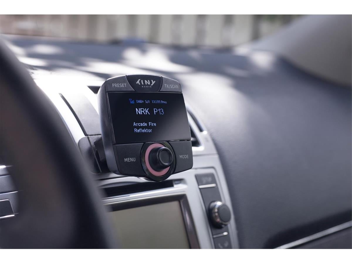 Tiny Audio C6 hämtar ström från 12V-uttaget i bilen, och sänder DAB-ljudet vidare som radiovågor över FM.