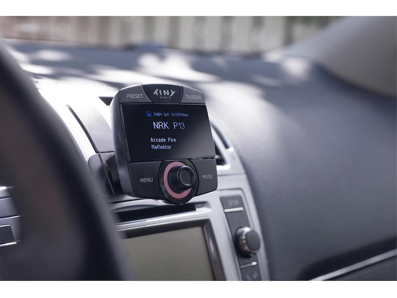 Tiny Audio C6 hämtar ström från 12V-uttaget i bilen, och sänder DAB-ljudet vidare som radiovågor över FM.