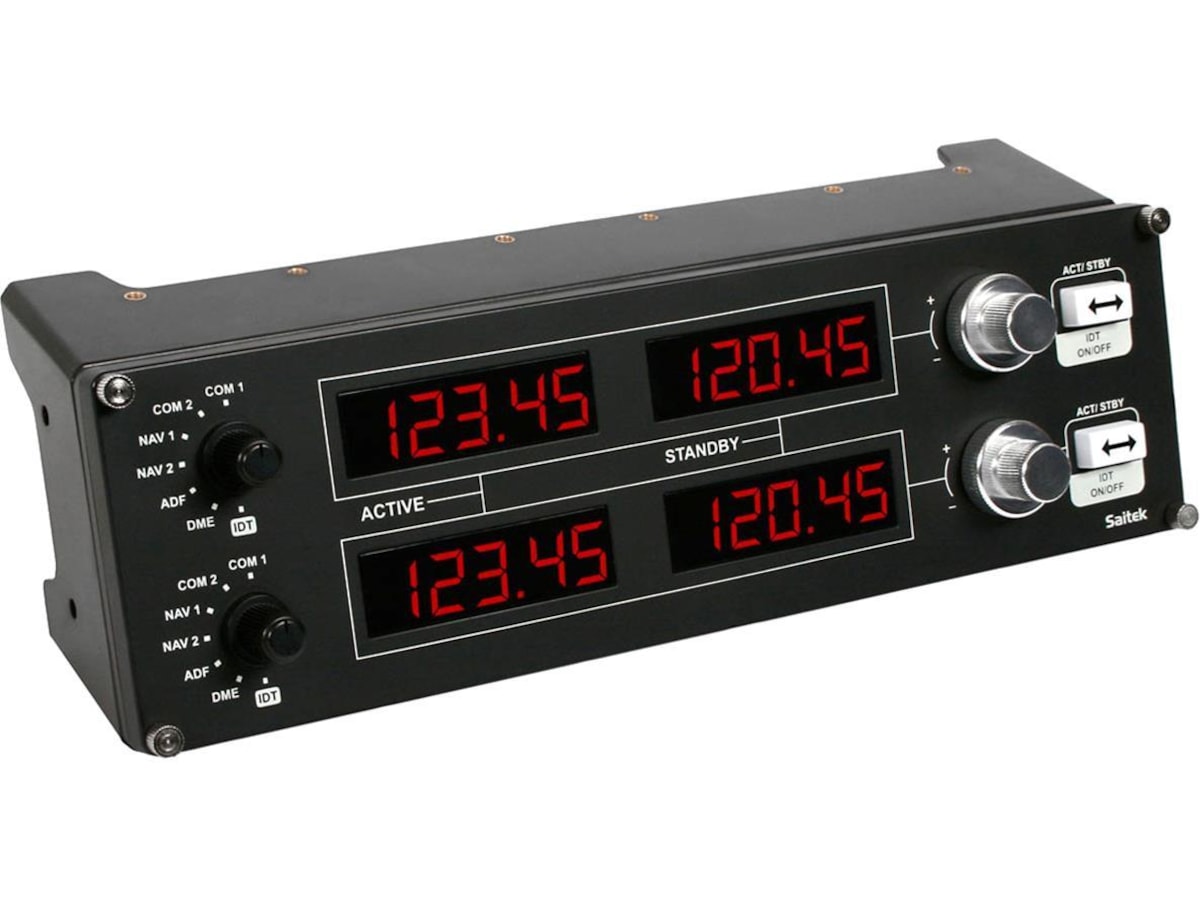 Logitech G Pro Flight radiopanel är en bunt med fyra LED-displayer med styrenheter för att du ska kunna installera en mängd kommunikations- eller navigeringsfunktioner. Varje display fungerar i realtid med FSX, X-Plane, och Prepar3D.