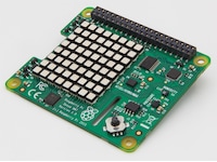 Sense HAT har en 8 × 8 RGB LED-matris, 5-knappars joystick och inkluderar följande sensorer: