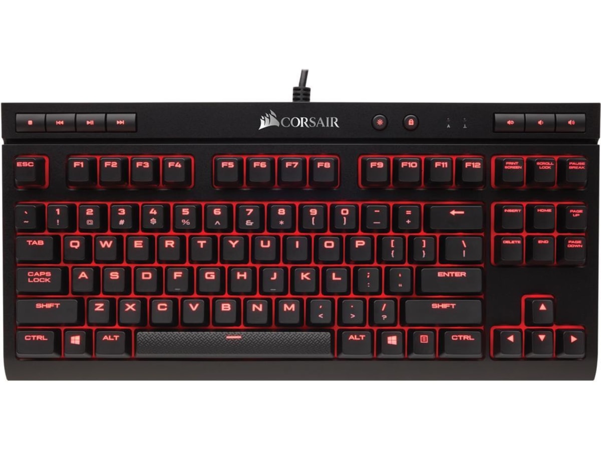 CORSAIR K63 har försetts med CHERRY MX Red mekaniska tangentswitchar för optimal prestanda. Lysande röd LED-bakgrundsbelysning förhöjer upplevelsen med dynamisk och praktiskt taget obegränsad belysningsjusterbarhet. Dedikerade volym- och multimediakontroller låter dig justera ditt ljud utan att avbryta spelet. Tangentbordet har designats med mindre än 10 tangenter för att lättare kunna transporteras och för att få mer utrymme på skrivbordet. 100 % antighosting med full tangent-rollover säkerställer dina kommandon och samtidiga tangenttryckningar registreras alltid. Utnyttja kraften i CUE för sofistikerad makroprogrammering och dramatiska ljuseffekter och animationer.