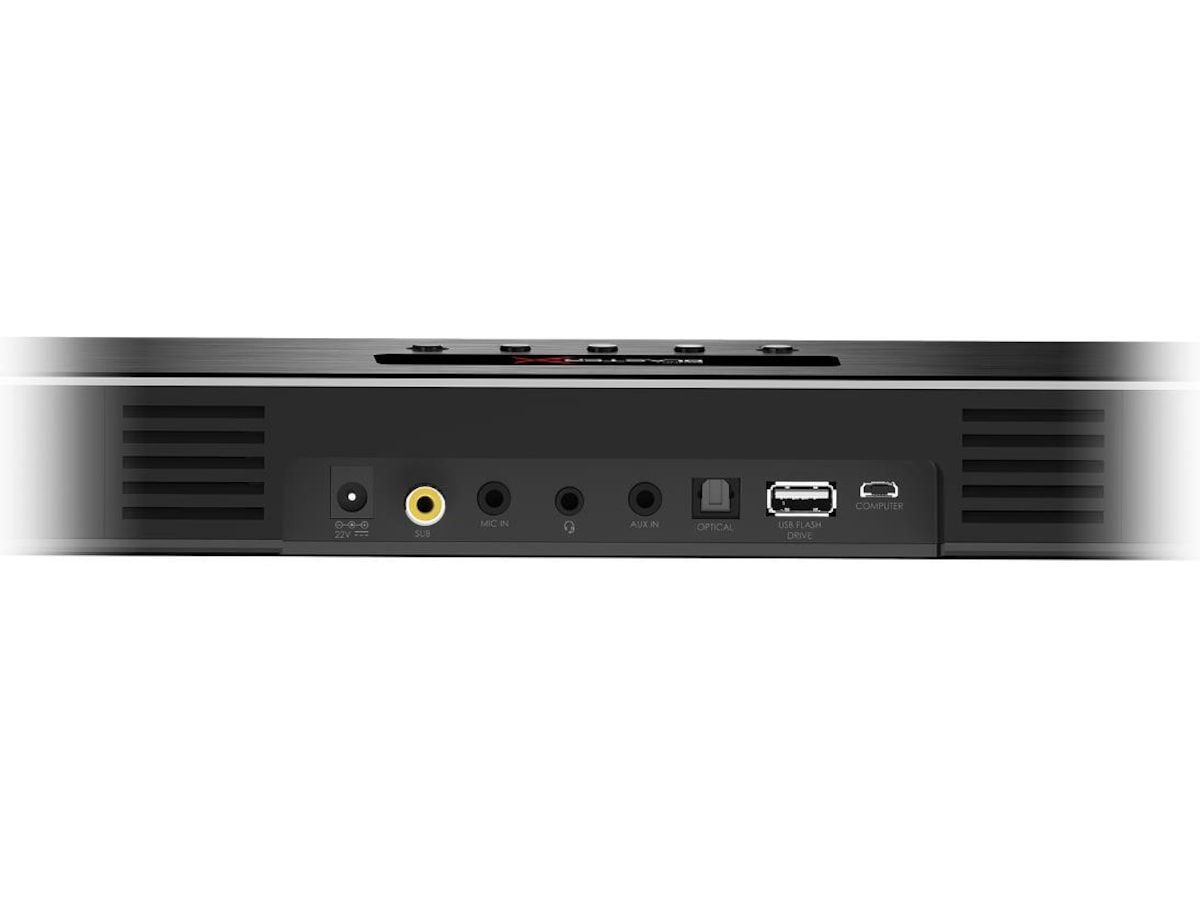 Anslutningstyp Utgång för bashögtalare, Linjeingång för ljud (minihörlurskontakt, stereo 3,5 mm), Hörlurar (minihörlurskontakt, stereo 3,5 mm), USB (4 pin USB typ A), Digital ljudingång (optisk) (TOSLINK), Mikrofon (minihörlurskontakt 3,5 mm)