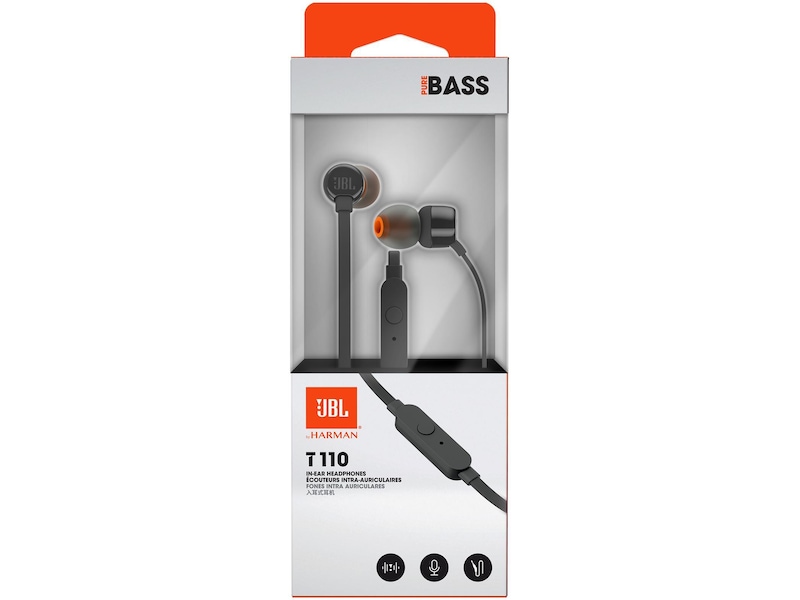 Nu introducerar vi JBL T110 in-ear hörlurar. De är lätta, bekväma och kompakta. Under öronenhetens hållbara hölje avger ett par 9 mm högtalare en kraftfull bas, och reproducerar JBL:s rena basljud som du tidigare har upplevt i konsertsalar, arenor och inspelningsstudior runt om i världen. Dessutom kan du med 1-knappsfjärrkontrollen på den trasselfria flatkabeln styra musikuppspelningen, samt besvara telefonsamtal i farten med en inbyggd mikrofon. Detta gör JBL T110 till en utmärkt daglig följeslagare för både arbete, både hemma och när du är ute och reser.