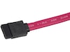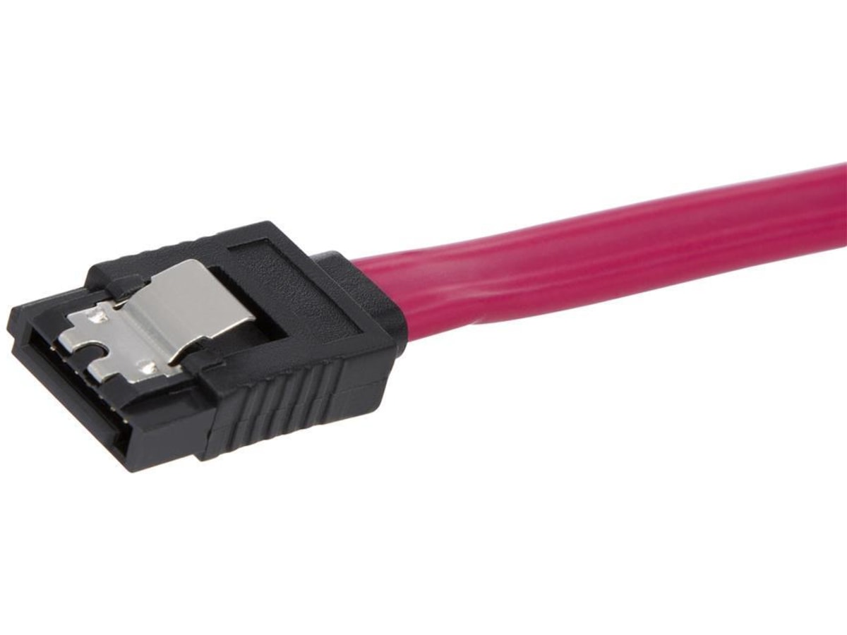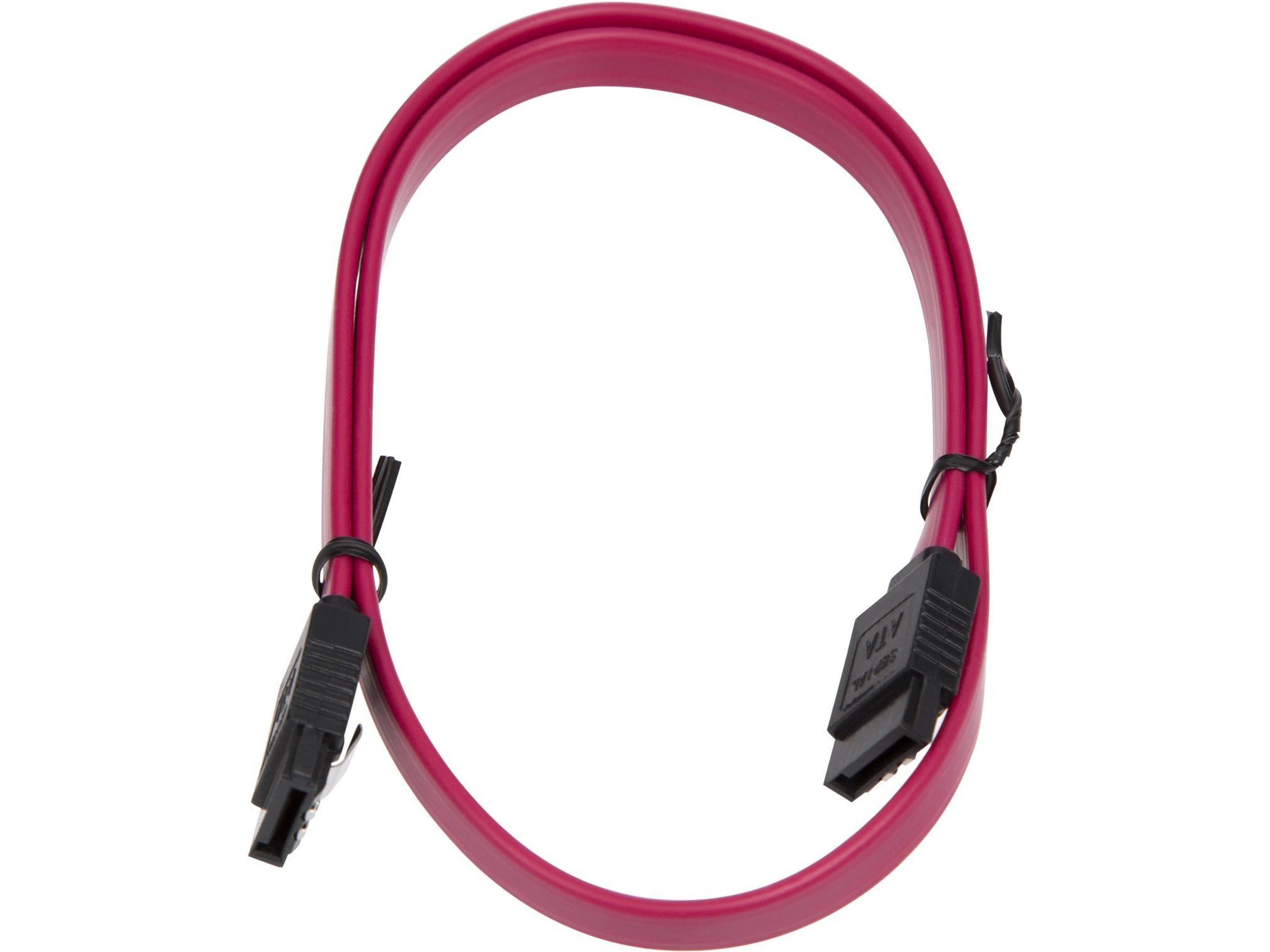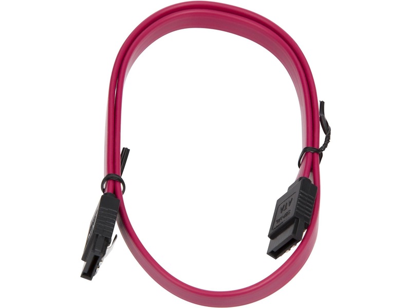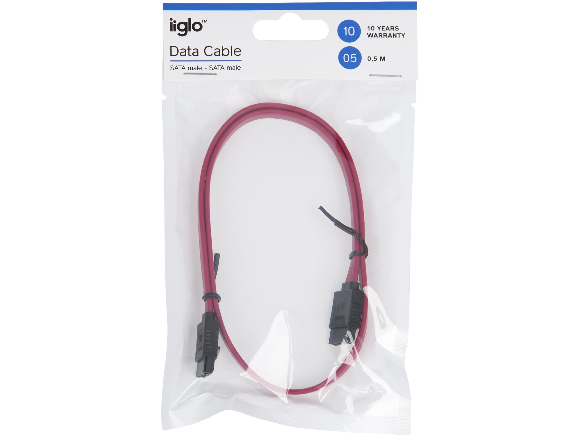 iiglo SATA-kabeln stödjer både SATA III, SATA II och SATA I. På ovansidan av kontakten sitter en låsflik som håller fast kontakten på hårddisken. En SATA-kabel (Serial ATA) använder sig av databuss-teknik för att överföra data från/till hårddisken och bundkortet inuti ett kabinett.