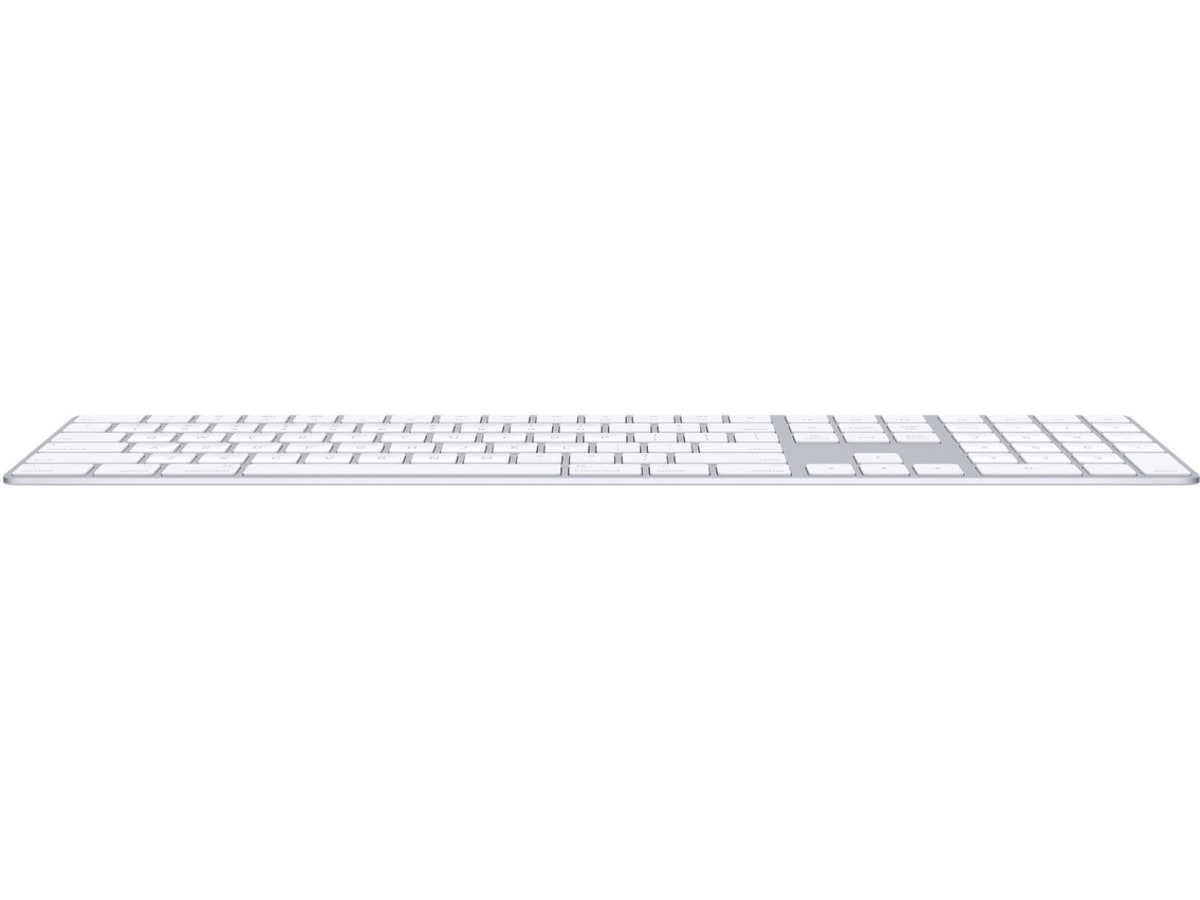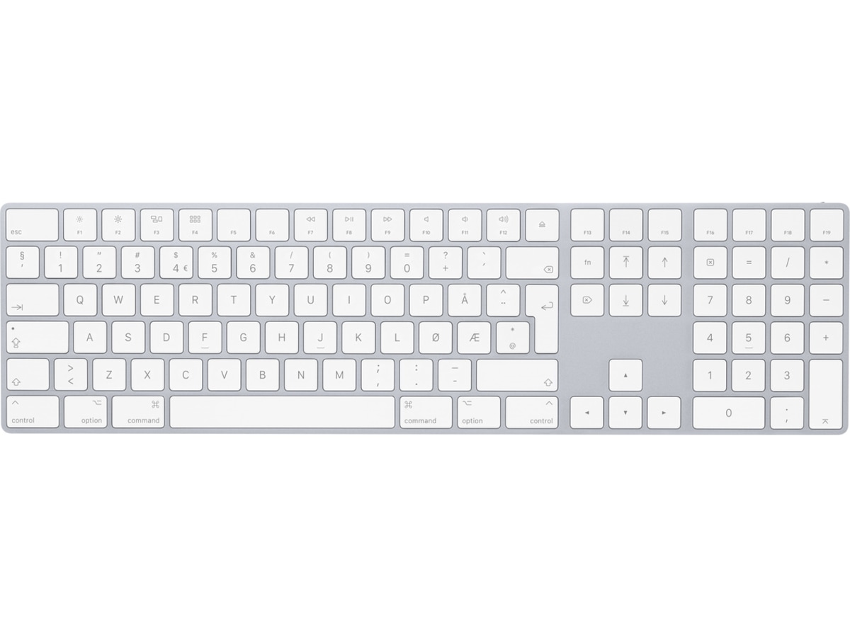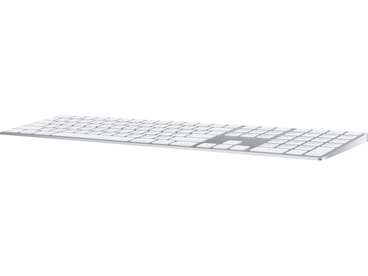 Magic Keyboard med numerisk del har en utökad layout med navigeringstangenter för snabb skrollning och piltangenter i full storlek för spel. En saxmekanism under varje tangent ger ökad stabilitet och effektivare tangentrörelser, medan den låga profilen gör det bekvämt att skriva och lätt att träffa rätt tangenter. Den numeriska delen är också praktisk när du jobbar med kalkylblad och ekonomiappar. Dessutom håller det inbyggda, laddningsbara batteriet riktigt länge – du kan använda tangentbordet i en månad eller ännu längre mellan laddningarna.