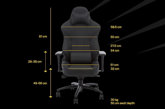 Är du trött och behöver en paus, kan stolen lutas 180 grader för en powernap. Då laddar du för att krossa motståndet i nästa omgång.