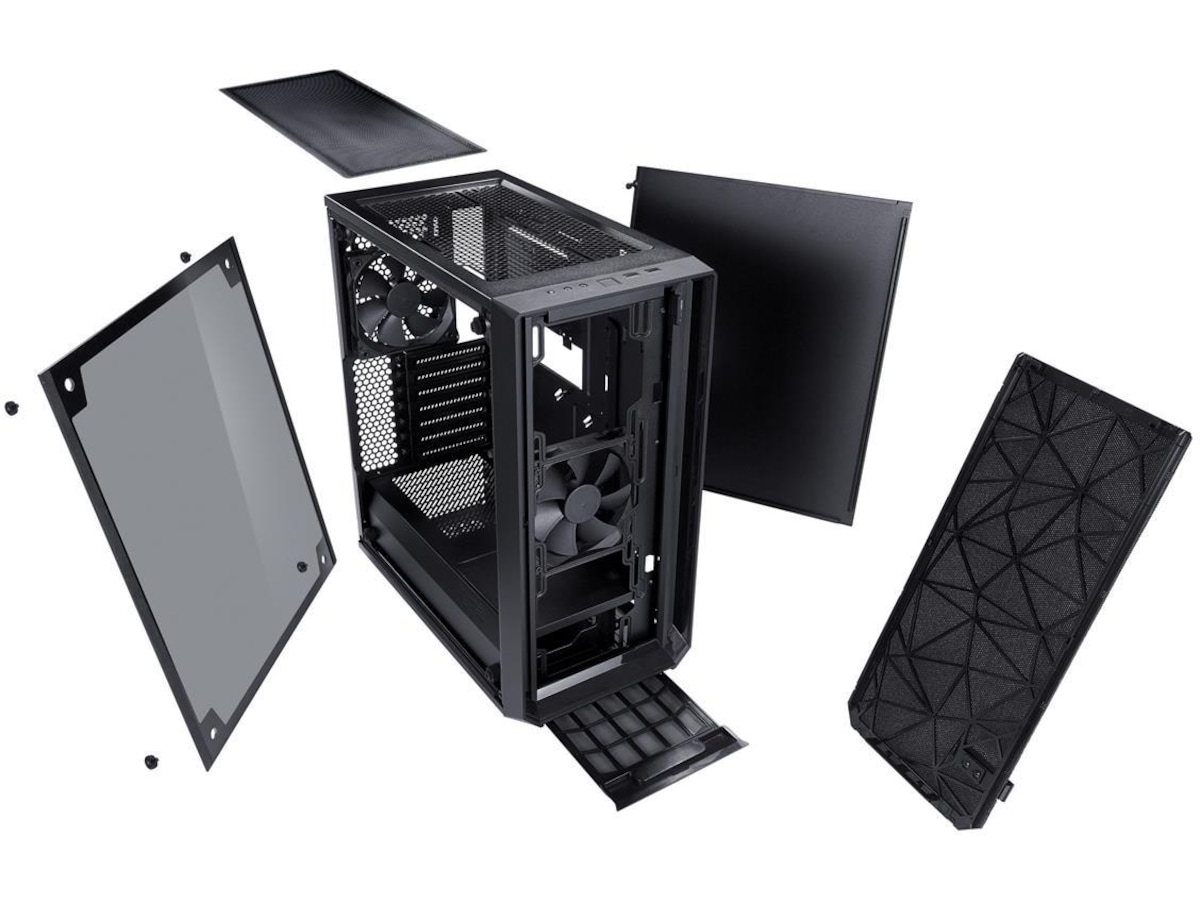 Meshify intar en aggressiv pose i Fractal Design-uppställningen med enastående kylningsprestanda och ett nytt, utmanande utseende. Som svarta diamantfasetter skapar den kantiga asymmetrin hos Meshify C ett unikt utrymme som ny kraft i en design med högt luftflöde. Härdat glas med en distinktiv nyans fullkomnar den diskreta “svart på svart”-estetiken med enastående stil.