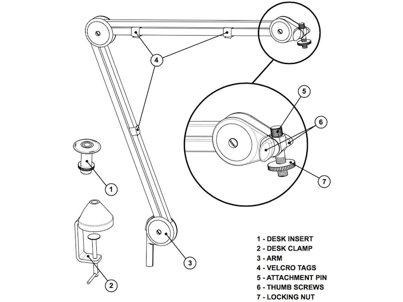 - Stödjer de flesta mikrofoner i sändningsstil som väger mellan 700 g och 1,1 kg såsom RØDE Procaster eller Podcaster