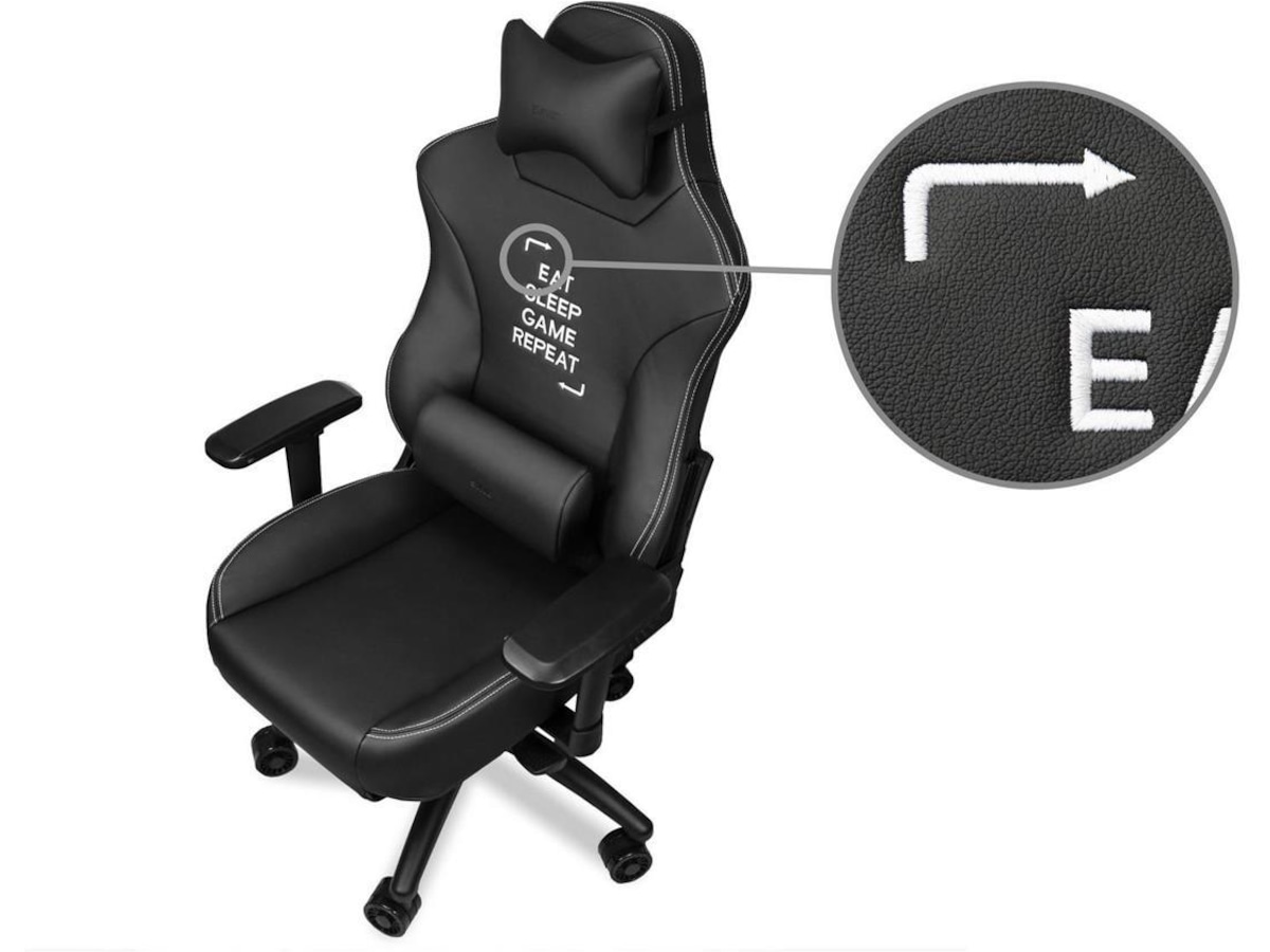 En Phoenix Tier 3 ESGR-modell har detaljer som tagna ur ditt favoritspel, och texten ”Eat sleep game repeat” i stolsryggen, råder det ingen tvekan om att ägaren är en sann och hängiven gamer.