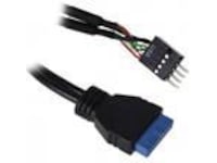 Den ca 15 cm långa kabeln har en USB 2.0 8-polig kontakt i hane på ena sidan (som finns på moderkort), på andra sidan finns en USB 3.0 19-polig kontakt i hona, som kopplas till moderkortet är ansluten.