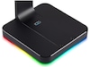 Du kan stolt visa upp ditt headset med dess ST100 RGB Premium Headset-stativ, med premium aluminiumkonstruktion och anpassningsbar RGB-belysning. Inbyggd 3,5 mm analog ingång möjliggör ett komplett utbud av stereo- eller 7.1-surroundljud för en uppslukande, flerkanalig ljudupplevelse. CUE programvara styr RGB-belysningen och ljudinställningarna, och synkroniseras med andra CORSAIR RGB-enheter via ett intuitivt gränssnitt som är enkelt att använda. Lätt åtkomliga, dubbla USB 3.1-ingångar ger förbättrad laddning och snabbare datahastigheter för ditt headset, din telefon och andra enheter medan den halkfria, gummerade basen ger stabilitet och skydd för ditt skrivbord.