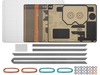 4 x kartongark, Ark med reflexklistermärken, 2 x ringuppsättningar (orange), 2 x snören (blå), 19 x kartongark, 2 x grå kanvasremmar (små), Grå kanvasrem (stor), Grå kanvasrem (medelstor), 2 x snören (orange), 10 x ringuppsättningar (grå) |