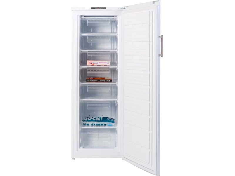 Frysskåpet är kompressordrivet och har en fryskapacitet på 11 kg/dag, och med dess nettokapacitet på 225 liter passar det perfekt för ett medelstort hushåll.