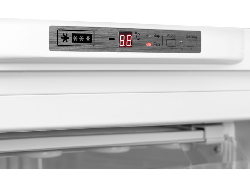 Temperatur och andra inställningar styrs via en LED-display med styrknappar. Du kan också välja mellan olika fryslägen. Bland annat ett superfrysläge som är perfekt för snabb infrysning av stora mängder.